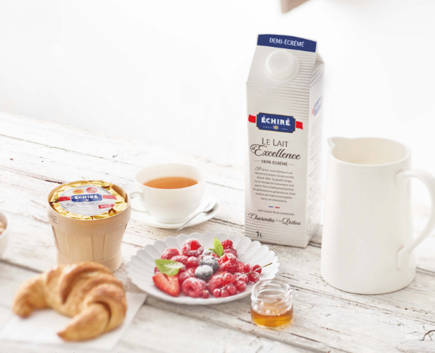Découvrez le goût unique du lait de notre région. À la fois onctueux et savoureux, retrouvez le goût de votre enfance avec le lait Échiré, à déguster au petit déjeuner, au goûter ou à utiliser dans des recettes gourmandes et généreuses.